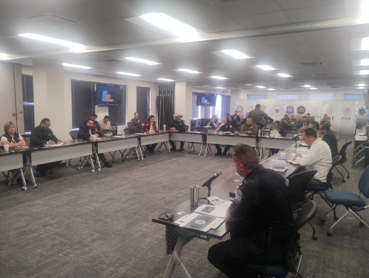 La Secretaría de Seguridad Pública Municipal (SSPM), participó en la Reunión Binacional del Protocolo de Violencia Fronteriza, a la que asistieron representantes de las agencias y corporaciones de los tres niveles de gobierno de ambos lados de la frontera, así como del Consulado General de Estados Unidos en Ciudad Juárez.