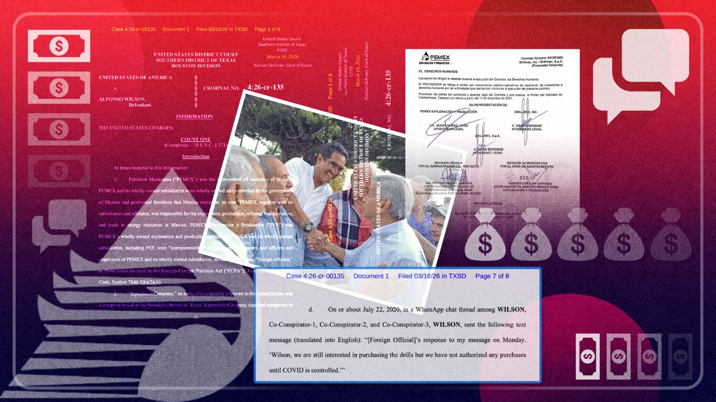 “El papel de Wilson, de acuerdo con la acusación, consistía en fungir como enlace directo con el funcionario de Pemex para influir en decisiones internas y asegurar la adjudicación del contrato”, detalla la organización civil.