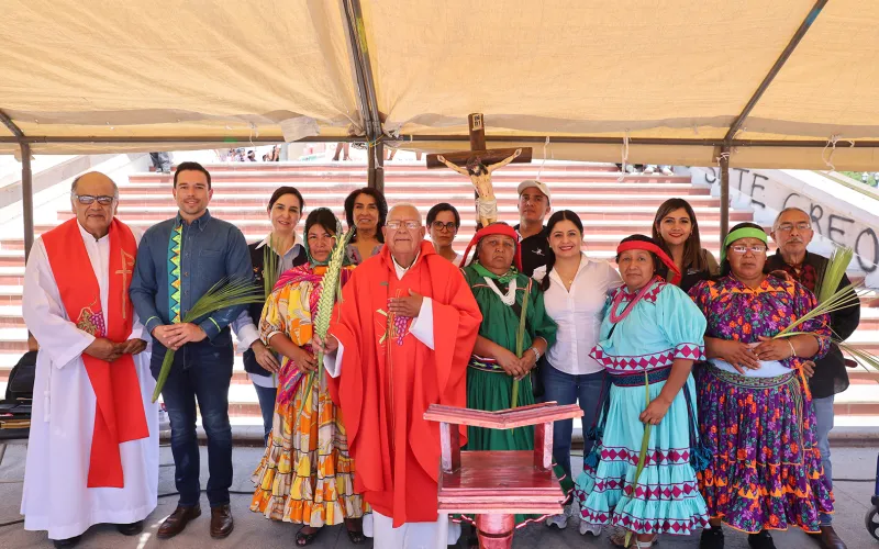 Con el apoyo de la Secretaría de Pueblos y Comunidades Indígenas (SPyCI), más de 400 miembros de las comunidades indígenas asentadas en Chihuahua capital, con una bendición de ramos iniciaron la Semana Santa Rarámuri en la Plaza del Ángel.