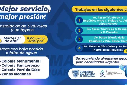Realizará JMAS cambio de válvulas en avenida Paseo Triunfo de la República