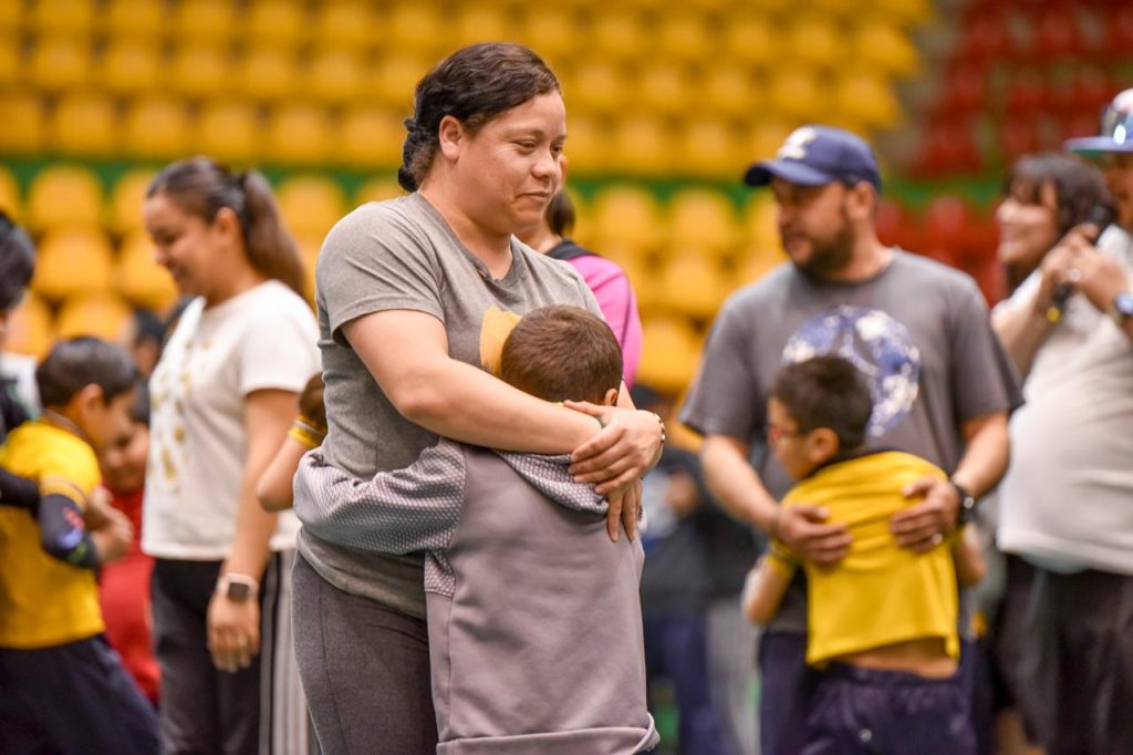La jornada reunió a alrededor de 300 niñas y niños acompañados de sus padres en el Gimnasio del Colegio de Bachilleres del Estado de Chihuahua, donde participaron en dinámicas físicas y ejercicios diseñados para promover la coordinación, la confianza y el trabajo en equipo.