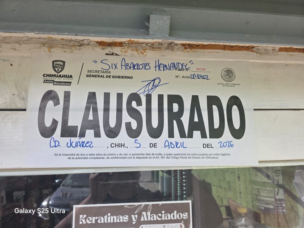 Durante la semana del 6 al 12 de abril, personal de la Subsecretaría de Gobernación realizó 334 inspecciones a establecimientos que expenden y/o comercializan bebidas alcohólicas, con resultado de 16 clausuras: cuatro en Chihuahua, una en Cuauhtémoc y Delicias, y 10 en Juárez.