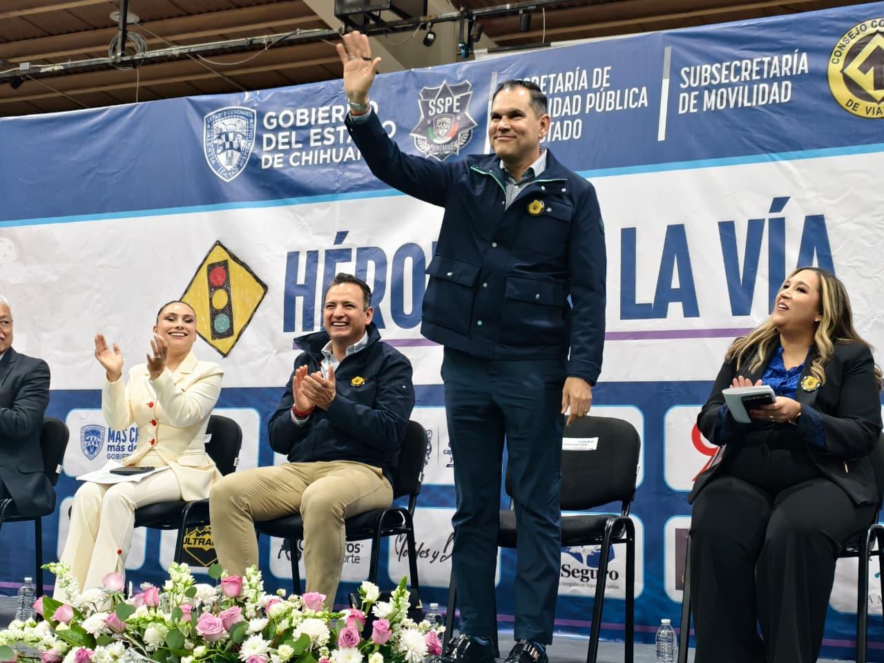 El evento contó con César Komaba, subsecretario de Movilidad; José Antonio Durán, director de Movilidad y Cultura Vial; Luis Carlos Bustamante, presidente del Consejo Consultivo de Vialidad; Ildefonso Ruiz Benítez, director de la Escuela Normal del Estado, así como el alcalde de Chihuahua, Marco Bonilla.