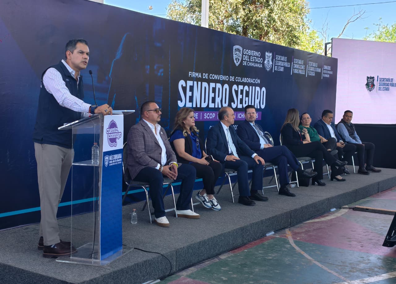 En representación de la gobernadora Maru Campos, el secretario de Seguridad Pública del Estado, Gilberto Loya Chávez, encabezó la firma del convenio del programa Sendero Seguro, entre el Gobierno del Estado, a través de la SSPE, la Secretaría de Desarrollo Urbano y Ecología, el Instituto Chihuahuense de las Mujeres y la Secretaría de Comunicaciones y Obras Públicas.