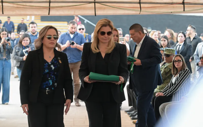 En una sentida ceremonia que se realizó en el helipuerto del C4 de Chihuahua, la gobernadora Maru Campos encabezó un homenaje póstumo al director de la Agencia Estatal de Investigación (AEI), Pedro Oseguera y al oficial Manuel Genaro Méndez Montes, que este fin de semana perdieron la vida en cumplimiento de su deber.