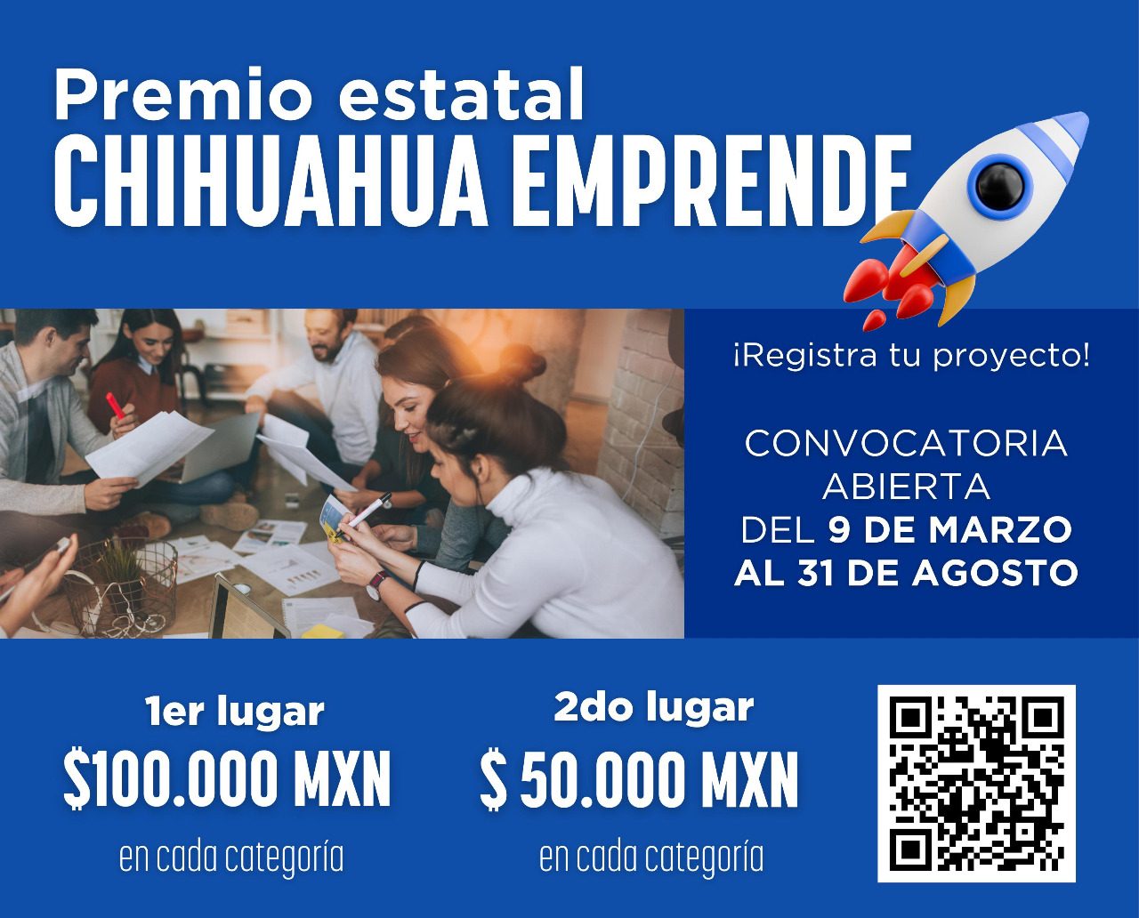 El Gobierno del Estado, a través de la Secretaría de Innovación y Desarrollo Económico (SIDE) invitó a las personas desarrolladoras de proyectos a participar en el Premio Chihuahua Emprende 2026, el cual contará con 100 mil pesos para el primer lugar.