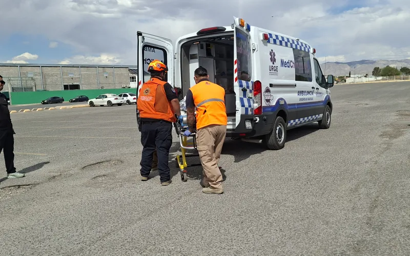 Poco después, el helicóptero aterrizó de manera segura en la explanada de la Deportiva Sur, donde ya lo esperaba una unidad de la Unidad de Rescate del Gobierno del Estado (URGE), cuyo personal realizó el traslado terrestre final hacia el nosocomio especializado.