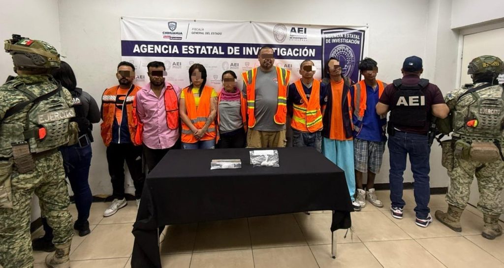 Derivado del seguimiento a una carpeta de investigación con la causa penal 261/2026, elementos de la Agencia Estatal de Investigación (AEI), adscritos al Centro de Operaciones Estratégicas (COE), cumplimentaron una orden de cateo en un inmueble de la calle Montes Himalaya de la colonia La Cuesta II, en donde ocho personas fueron detenidas en flagrancia por delitos contra la salud.