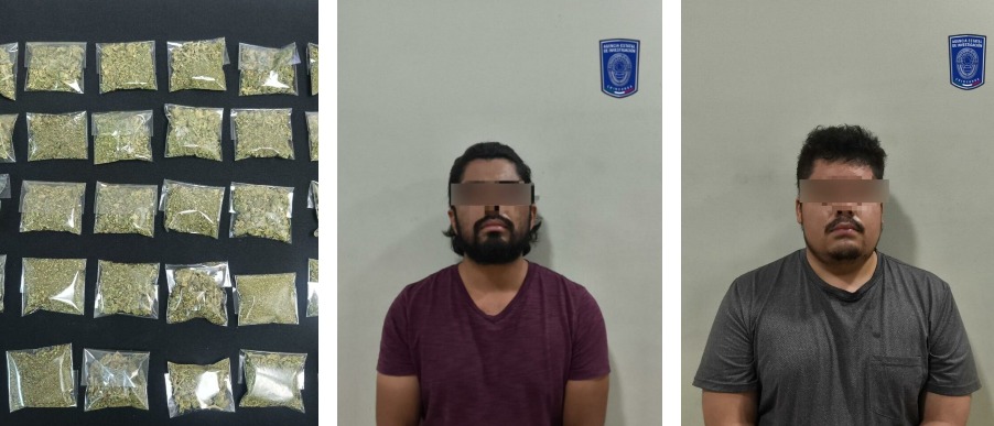 Elementos de la Agencia Estatal de Investigación (AEI), adscritos al Centro de Operaciones Estratégicas (COE) de la Fiscalía de Distrito Zona Norte, detuvieron en flagrancia por delitos contra la salud a Luis Alberto C. J., y Alexander C. J., en Ciudad Juárez.