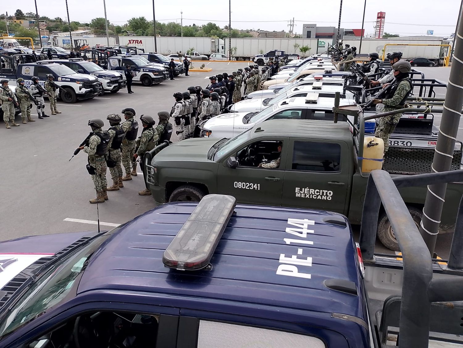 El dispositivo arrancó en Bulevar Libramiento y carretera Juárez Porvenir, punto estratégico, en donde se reunieron las fuerzas policiacas y militares para sentar las bases de operatividad.