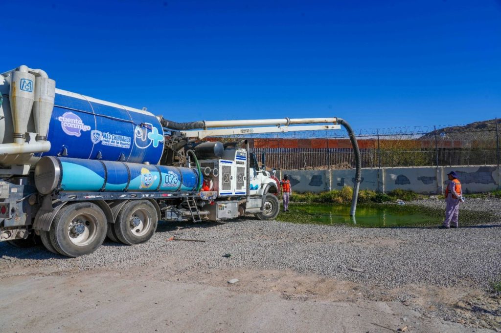 Como parte de los acuerdos, la JMAS inició trabajos de mantenimiento en las alcantarillas cercanas a la planta tratadora, con equipos de inyección y succión tipo vactor, también, y se instalará una barrera para prevenir el derrame de aguas residuales hacia el país vecino.