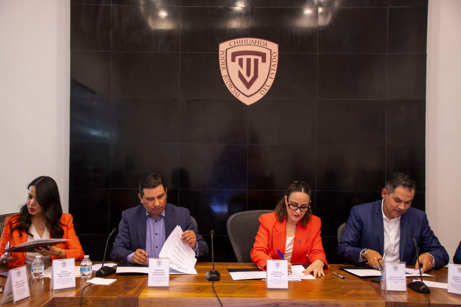 Con el objetivo de fortalecer la actuación de los cuerpos de seguridad y garantizar procesos penales más sólidos, el Poder Judicial del Estado (PJE) firmó un Convenio de Colaboración Institucional y Capacitación con la Secretaría de Seguridad Pública del Estado (SSPE), el Municipio de Chihuahua, Guardia Nacional (GN) y FICOSEC.