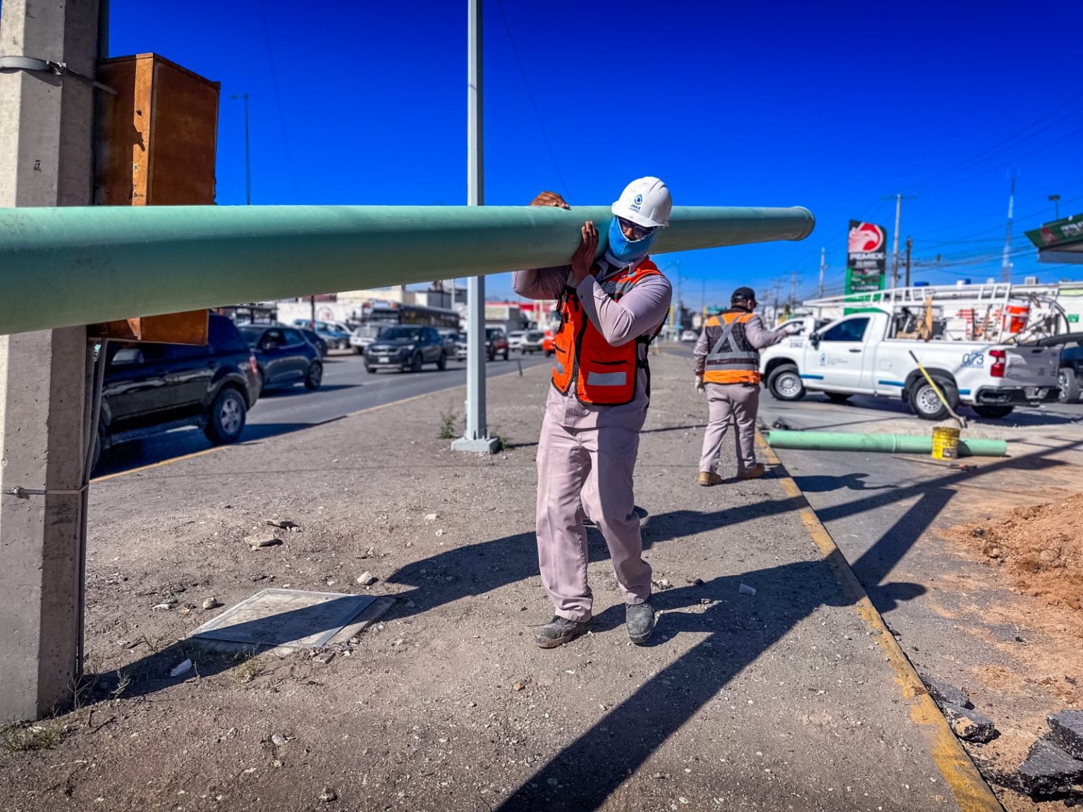 Como parte del proyecto de sectorización, la Junta de Agua y Saneamiento de Juárez (JMAS) trabajó por la noche de este jueves en la instalación de tubería nueva de 12 pulgadas, la cual conectará dos pozos ubicados en Parajes de Oriente con el Tanque Superficial San Francisco, la cual brindará mejor suministro del agua en esta zona.