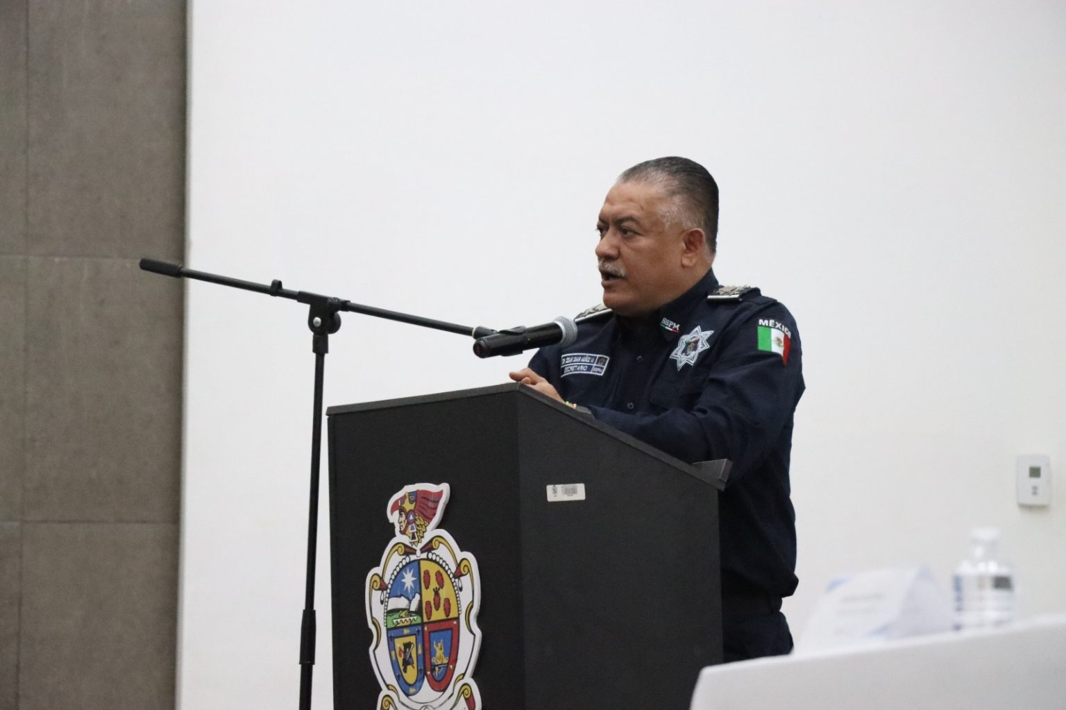 En el acto que se celebró en el auditorio de la Academia Municipal de Policía, estuvieron José Armando Pérez Eguade, coordinador de Asuntos Jurídicos de S-Mart; Rocío Violeta García Medina, directora de la Academia de Policía; Jesús Moctezuma Sánchez, coordinador General de la SSPM y el secretario César Omar Muñoz Morales.