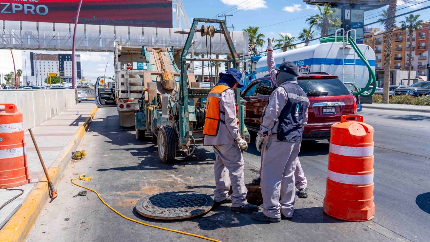 “Continuamos trabajando con el fin de reducir los taponamientos que se nos generaron sobre Teófilo Borunda, principalmente enfrentamos problemas por grasas, vísceras y hasta animales muertos que son arrojados a las alcantarillas, por lo que estamos interviniendo para deshacer estas obstrucciones”, señaló.